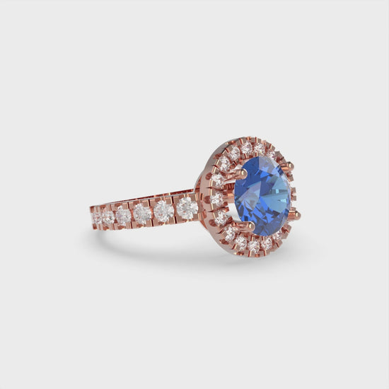 1.86 cttw Simulated Tanzanite Hidden Halo Engagement Ring - Solid Gold (Round Cut,7.5mm)
