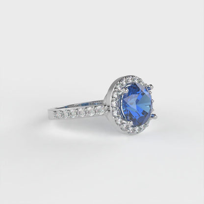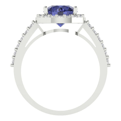 1.86 cttw Simulated Tanzanite Hidden Halo Engagement Ring - Solid Gold (Round Cut,7.5mm)