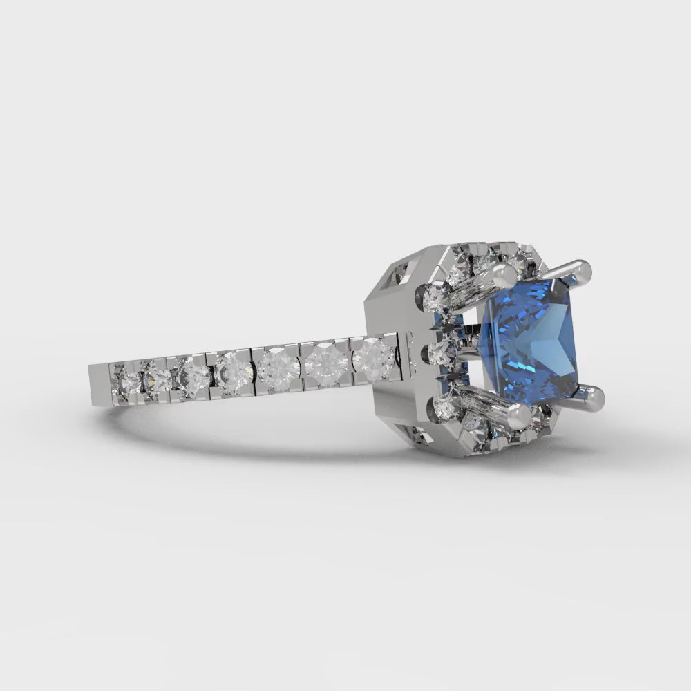 0.89 cttw Simulated Tanzanite Hidden Halo Engagement Ring - Solid Gold (Princess Cut,4.5mm)