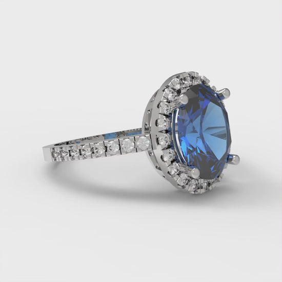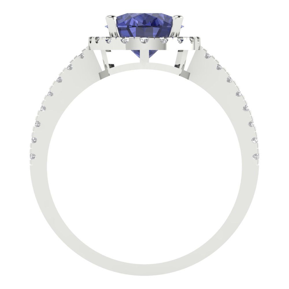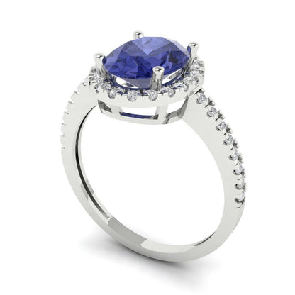 2.27 cttw Simulated Tanzanite Hidden Halo Engagement Ring - Solid Gold (Oval Cut,9X7mm)