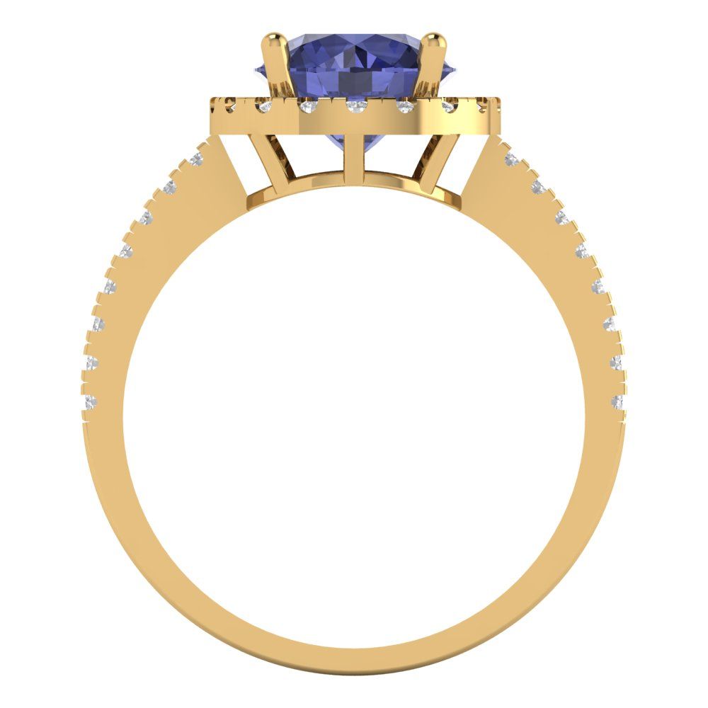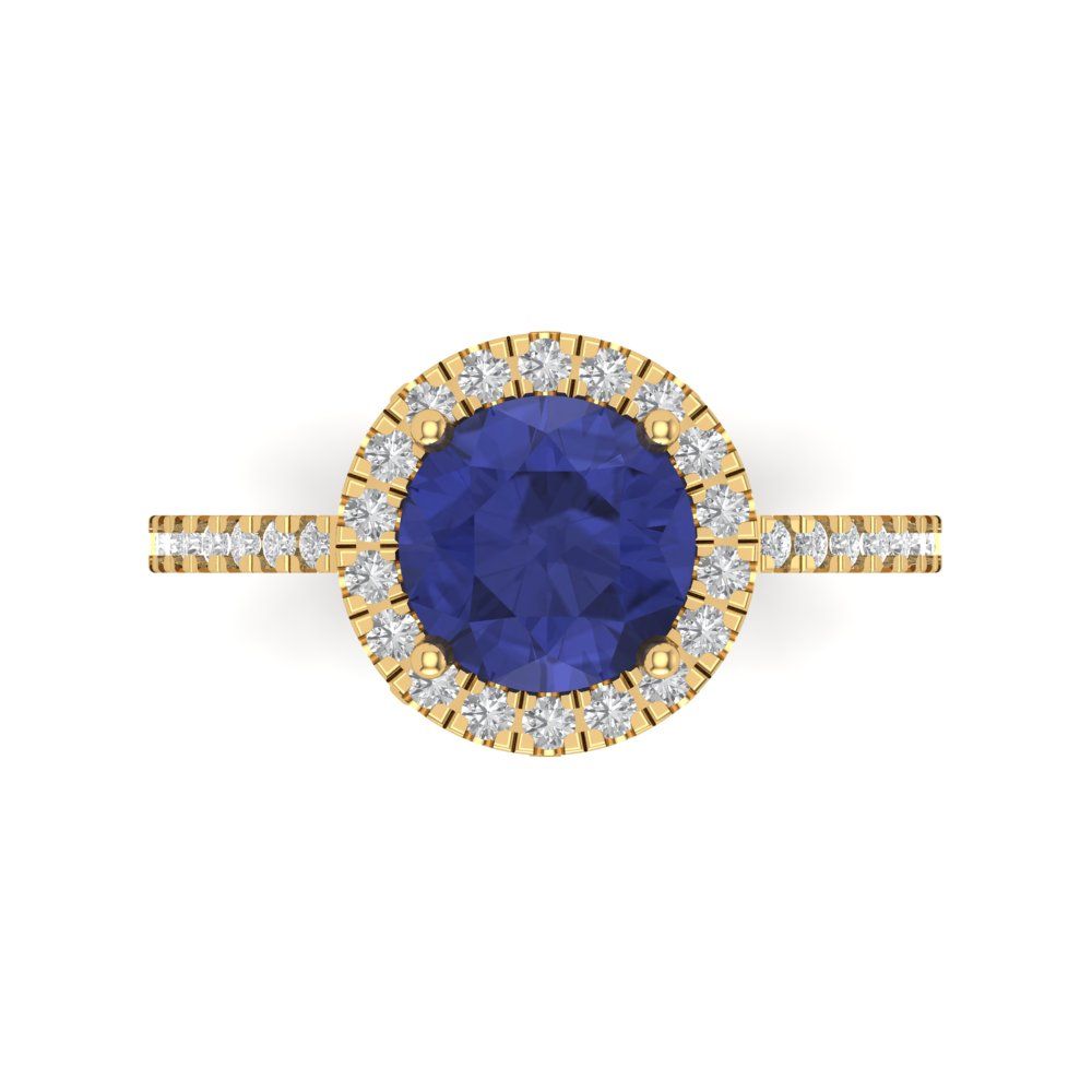 1.8 cttw Simulated Tanzanite Hidden Halo Engagement Ring - Solid Gold (Round Cut,7.5mm)