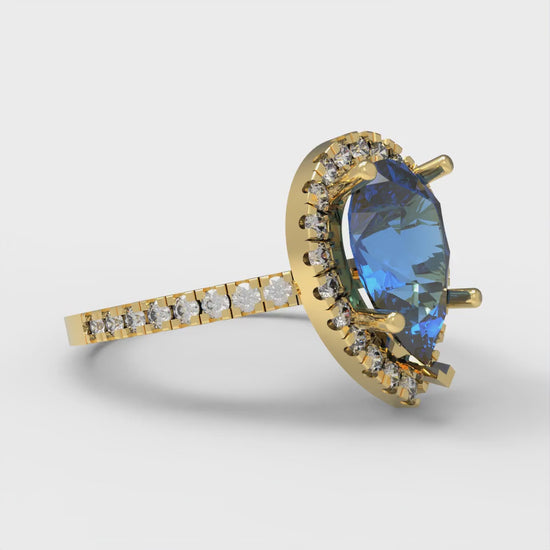 2.38 cttw Simulated Tanzanite Hidden Halo Engagement Ring - Solid Gold (Pear Cut,10x7mm )