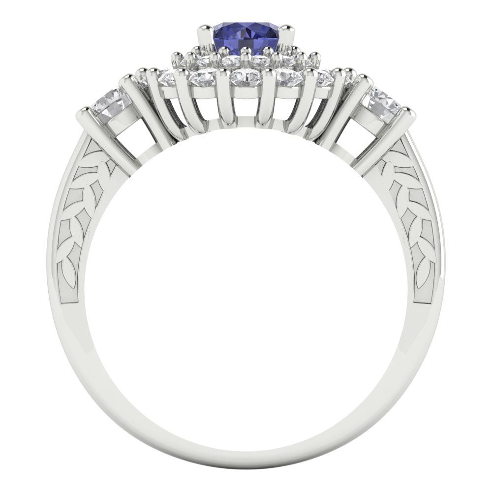 1.4 cttw Simulated Tanzanite Hidden Halo Engagement Ring - Solid Gold (Round Cut,5.0mm)
