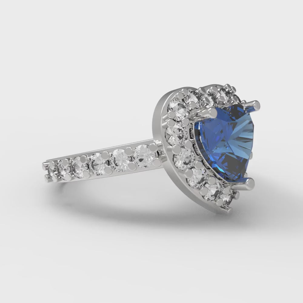 2.03 cttw Simulated Tanzanite Hidden Halo Engagement Ring - Solid Gold (Heart Cut,7.0mm)