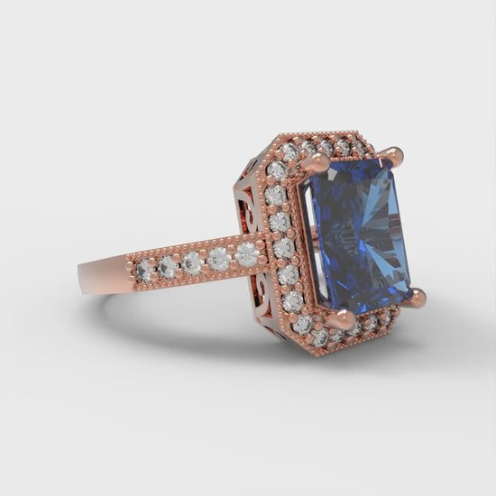 2.78 cttw Simulated Tanzanite Hidden Halo Engagement Ring - Solid Gold (Emerald Cut,8.5x6.5mm)