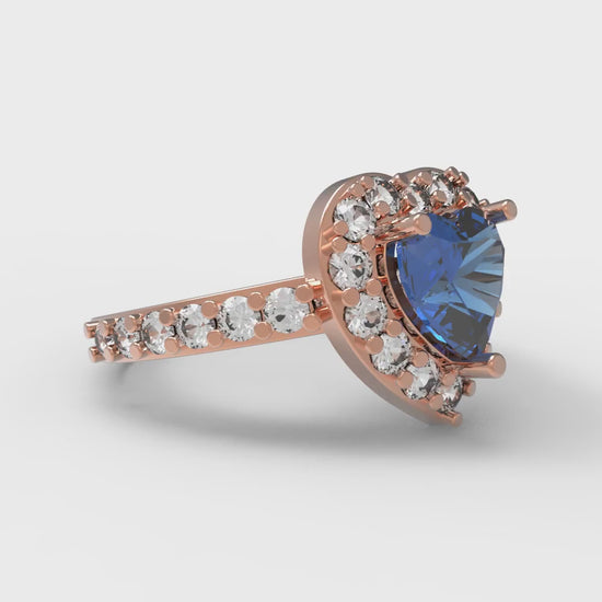 2.03 cttw Simulated Tanzanite Hidden Halo Engagement Ring - Solid Gold (Heart Cut,7.0mm)