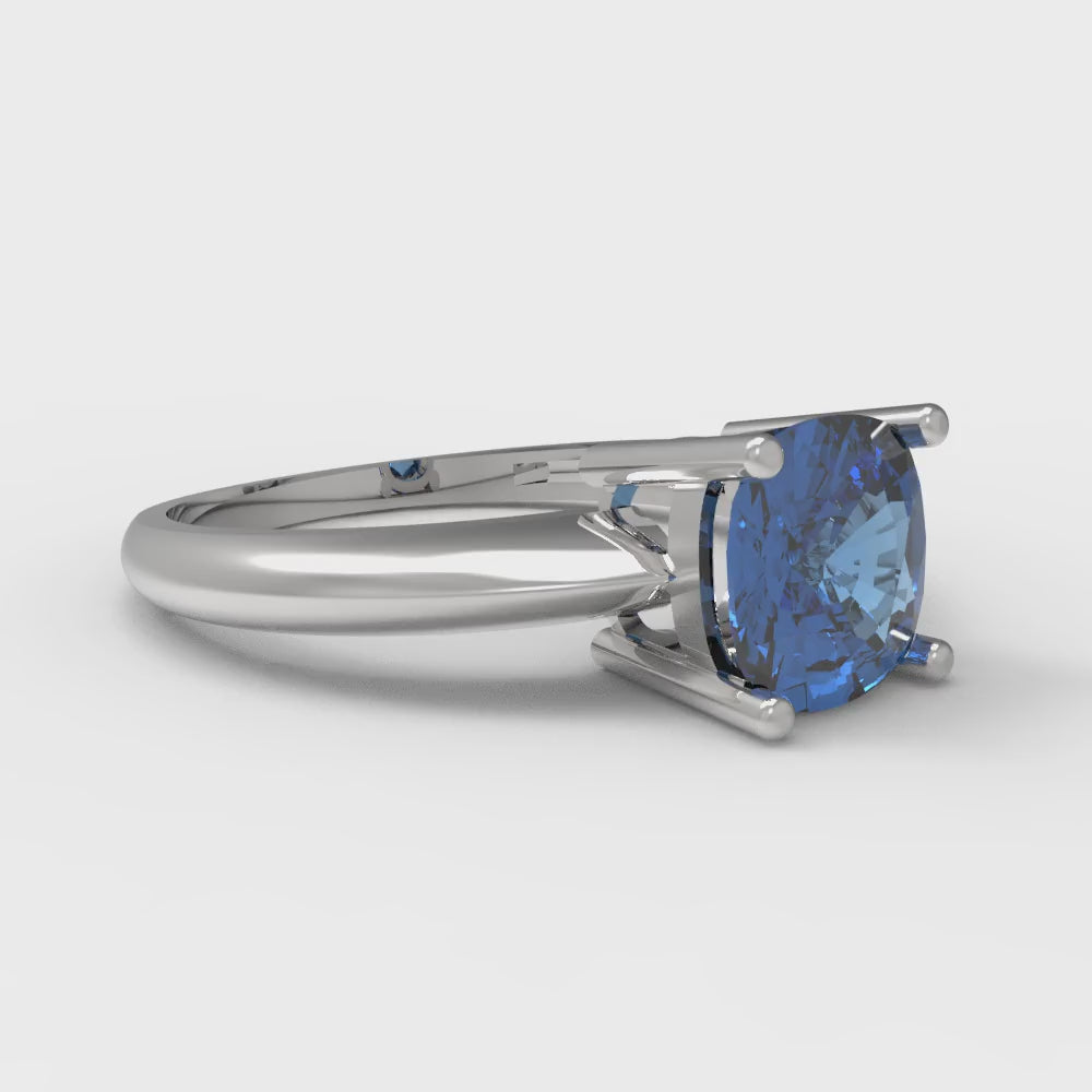 1.5 cttw Simulated Tanzanite Solitaire Engagement Ring - Solid Gold (Cushion Cut,6.5mm)
