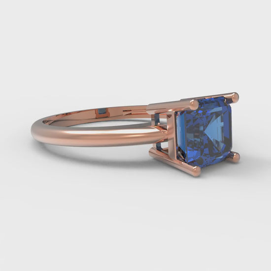 1 cttw Simulated Tanzanite Solitaire Engagement Ring - Solid Gold (Asscher Cut,6mm)