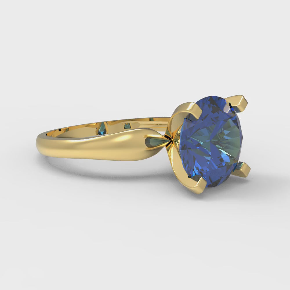 2.5 cttw Simulated Tanzanite Solitaire Engagement Ring - Solid Yellow Gold (VVS1, Round Cut,8.5mm)