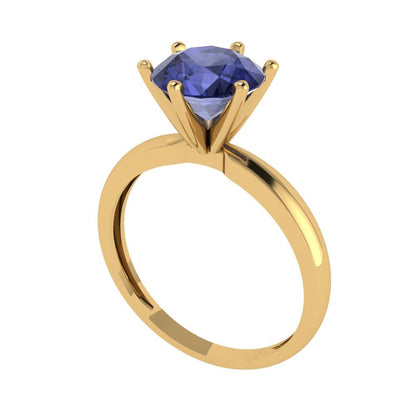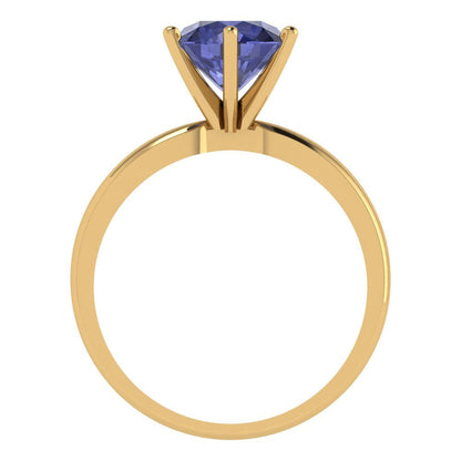 2 cttw Simulated Tanzanite Solitaire Engagement Ring - Solid Gold (Round Cut,8.0mm)