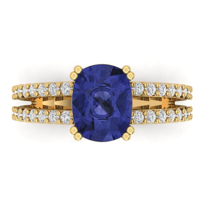 3.48 cttw Simulated Tanzanite Solitaire with Zirconia Simulated Diamond Accents Engagement Ring - Solid Gold (Long Cushion Cut,9x7mm)