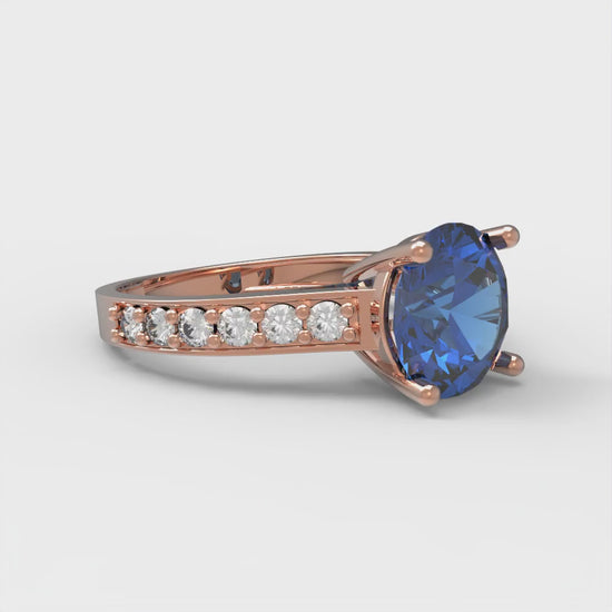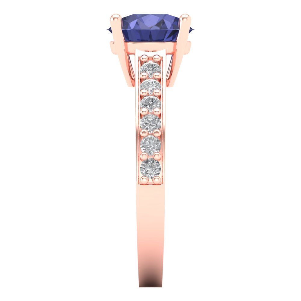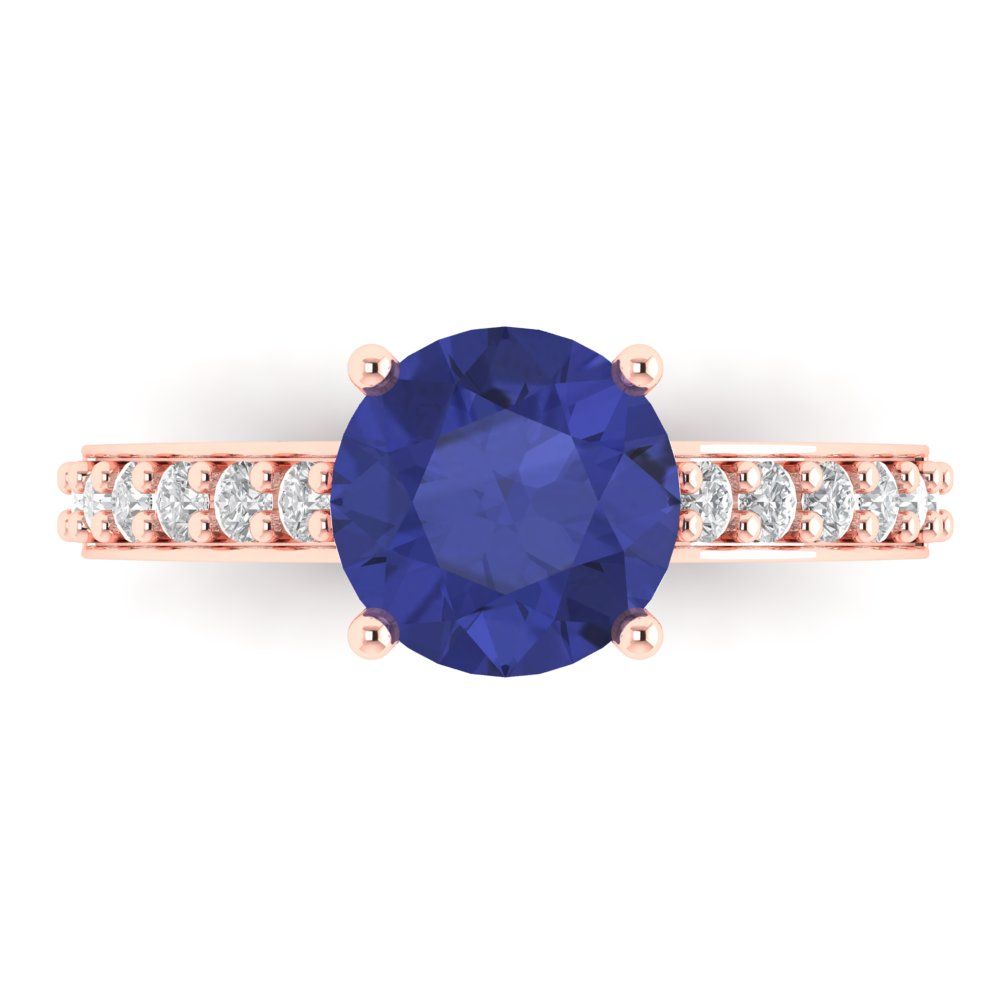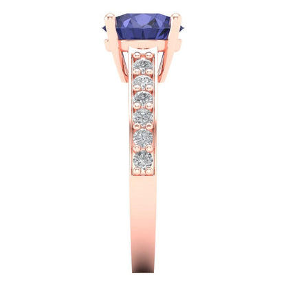 2.3 cttw Simulated Tanzanite Solitaire with Zirconia Simulated Diamond Accents Engagement Ring - Solid Gold (Round Cut,8.0mm)