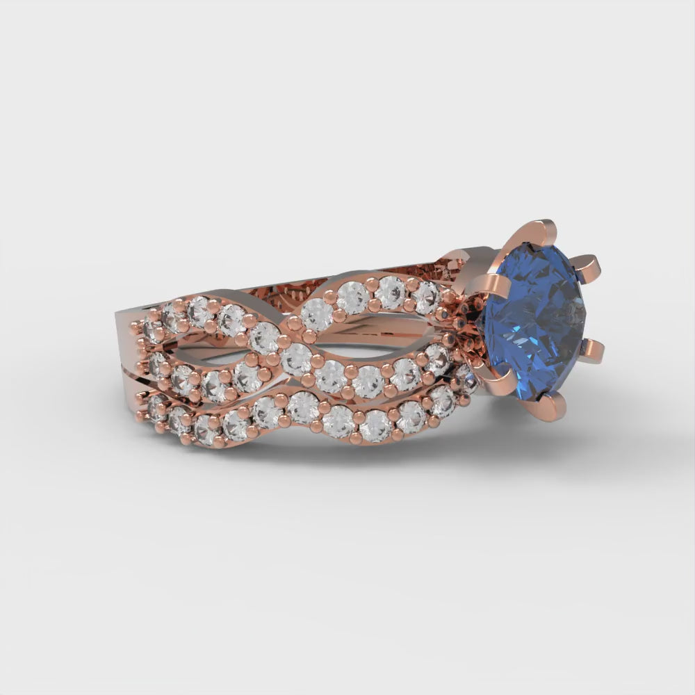 1.57 cttw Round Cut Simulated Tanzanite Bridal Set - Solid Rose Gold Engagement Ring & Wedding Band