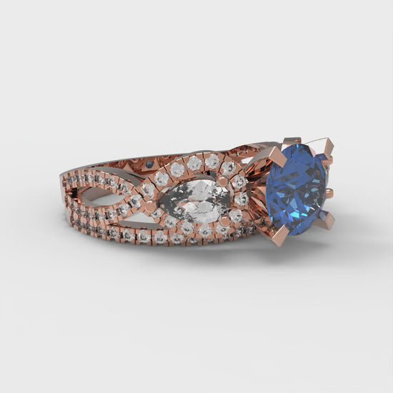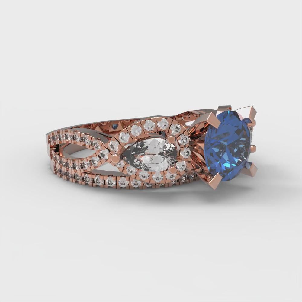 1.925 cttw Round Cut Simulated Tanzanite Bridal Set - Solid Rose Gold Engagement Ring & Wedding Band