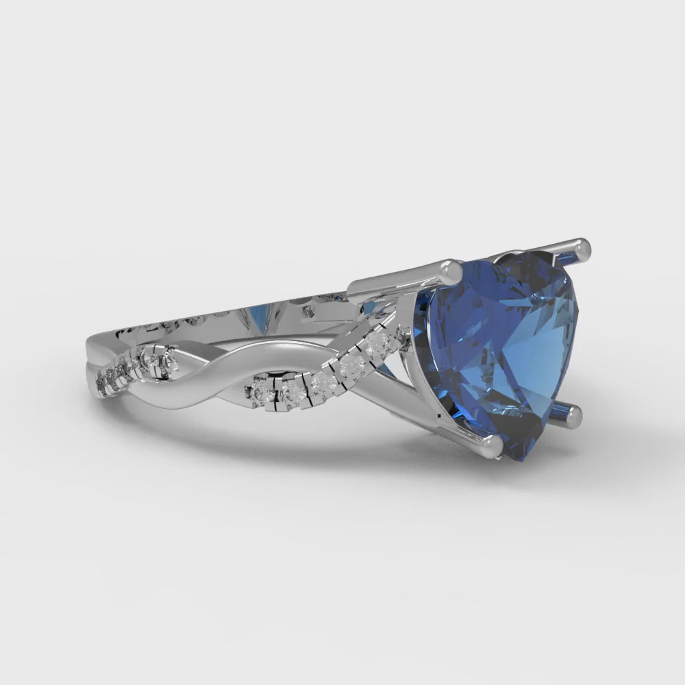 2.1 cttw Simulated Tanzanite Solitaire with Zirconia Simulated Diamond Accents Engagement Ring - Solid Gold (Heart Cut,8mm)