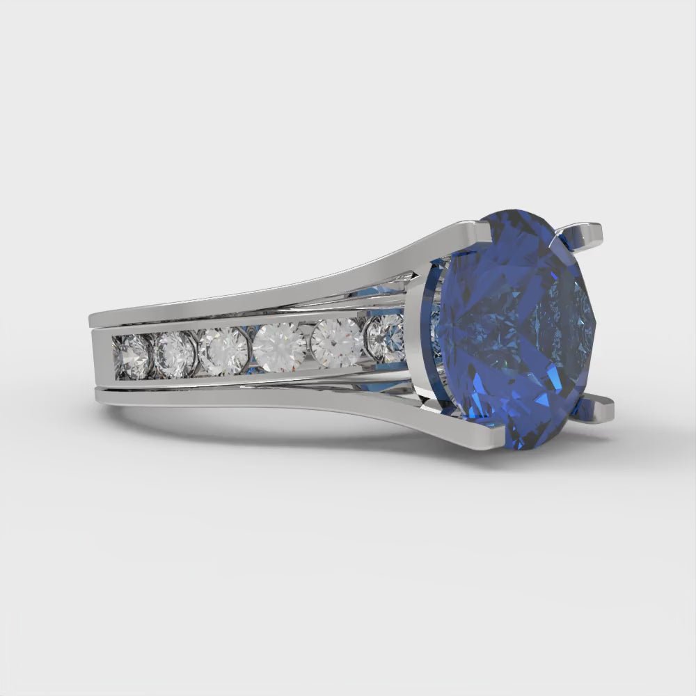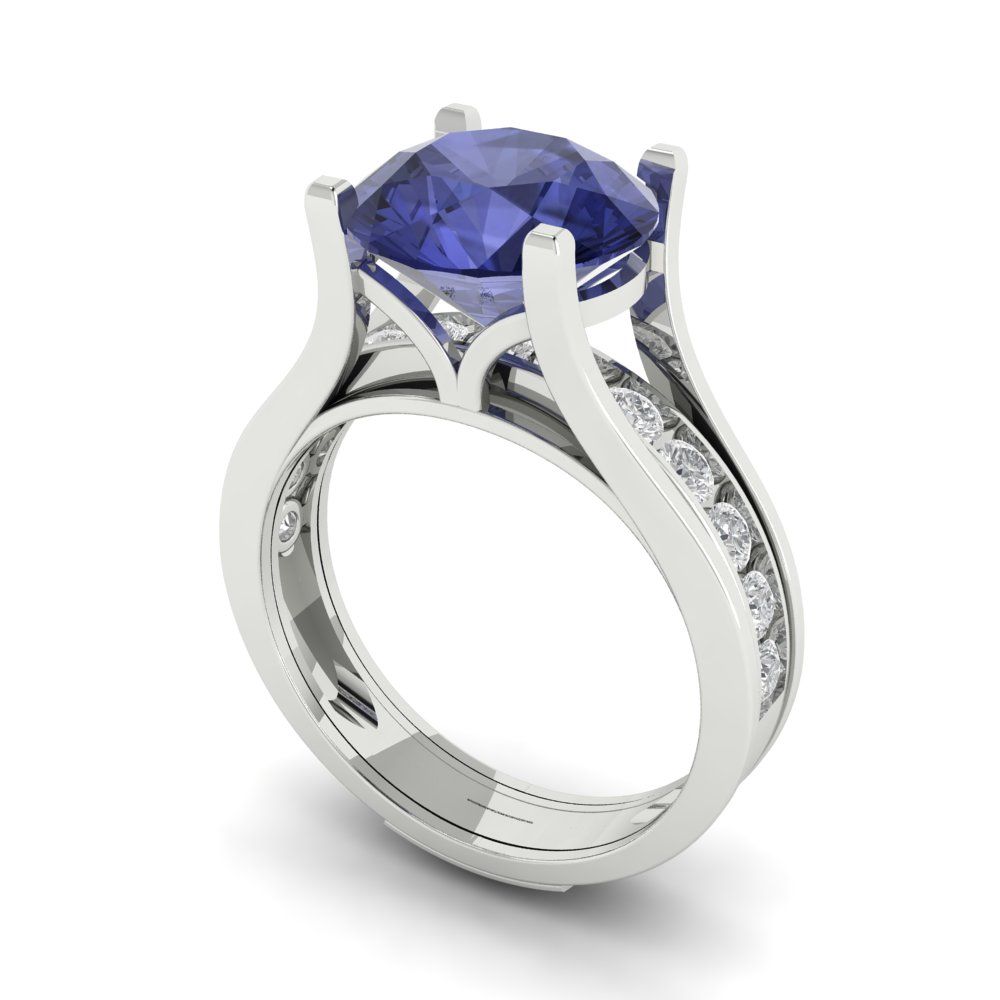 3.39 cttw Round Cut Simulated Tanzanite Bridal Set - Solid White Gold Engagement Ring & Wedding Band