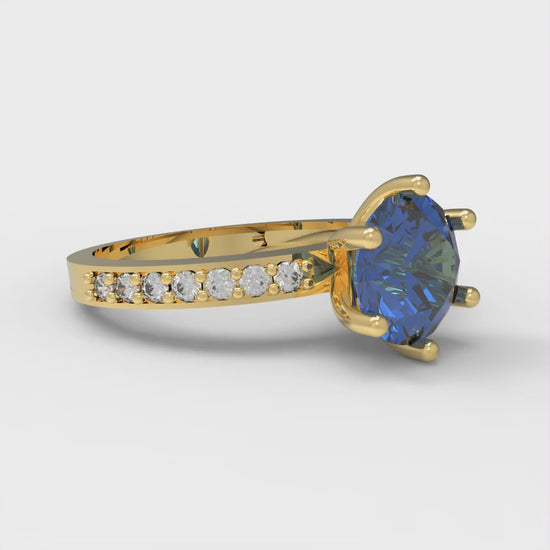1.71 cttw Simulated Tanzanite Solitaire with Zirconia Simulated Diamond Accents Engagement Ring - Solid Gold (Round Cut,7.5mm)