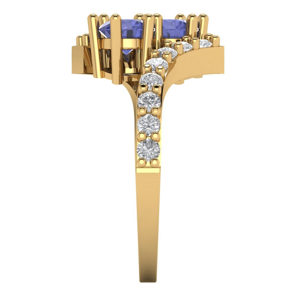 1.48 cttw Simulated Tanzanite Solitaire with Zirconia Simulated Diamond Accents Engagement Ring - Solid Gold (Round Cut,5mm)