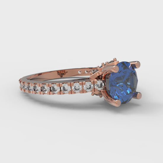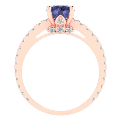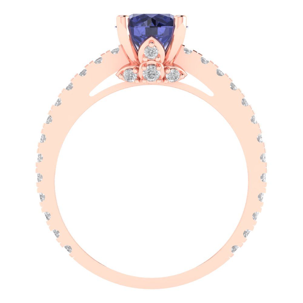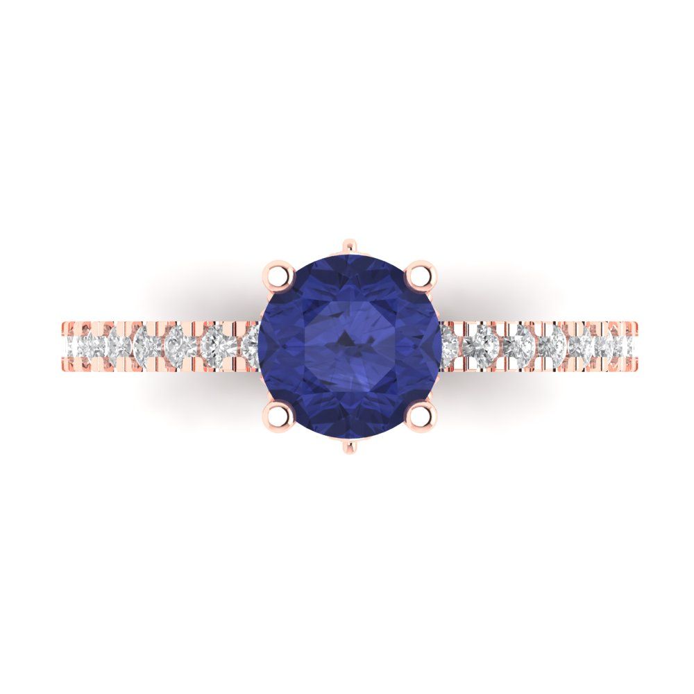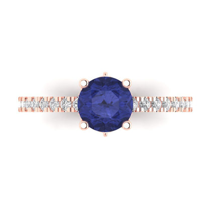 1.465 cttw Simulated Tanzanite Solitaire with Zirconia Simulated Diamond Accents Engagement Ring - Solid Gold (Round Cut,6.5mm)