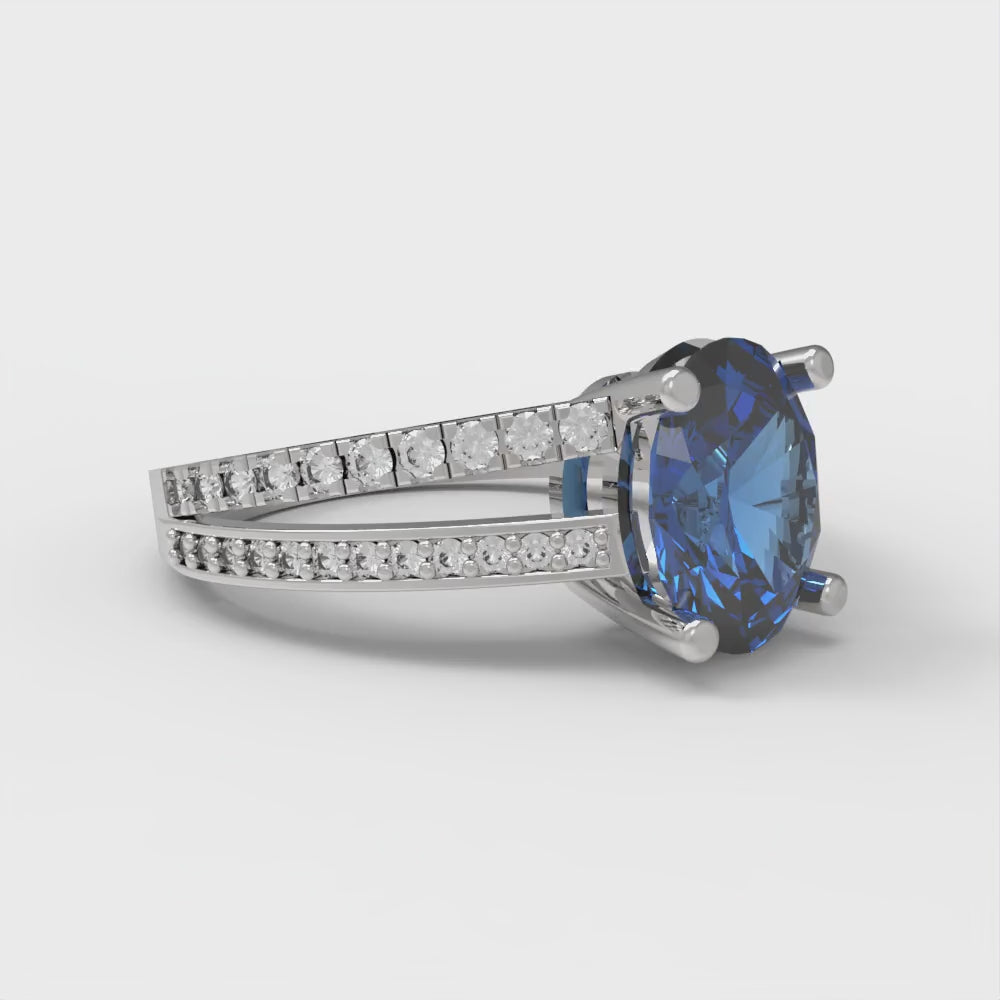 2.32 cttw Simulated Tanzanite Solitaire with Zirconia Simulated Diamond Accents Engagement Ring - Solid Gold (Oval Cut,9X7mm)