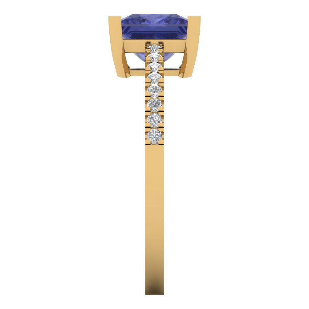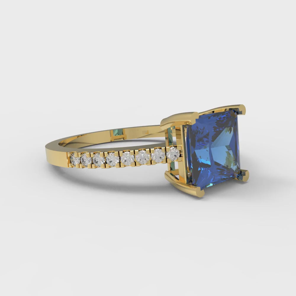 1.62 cttw Simulated Tanzanite Solitaire with Zirconia Simulated Diamond Accents Engagement Ring - Solid Gold (Princess Cut,6.5mm)