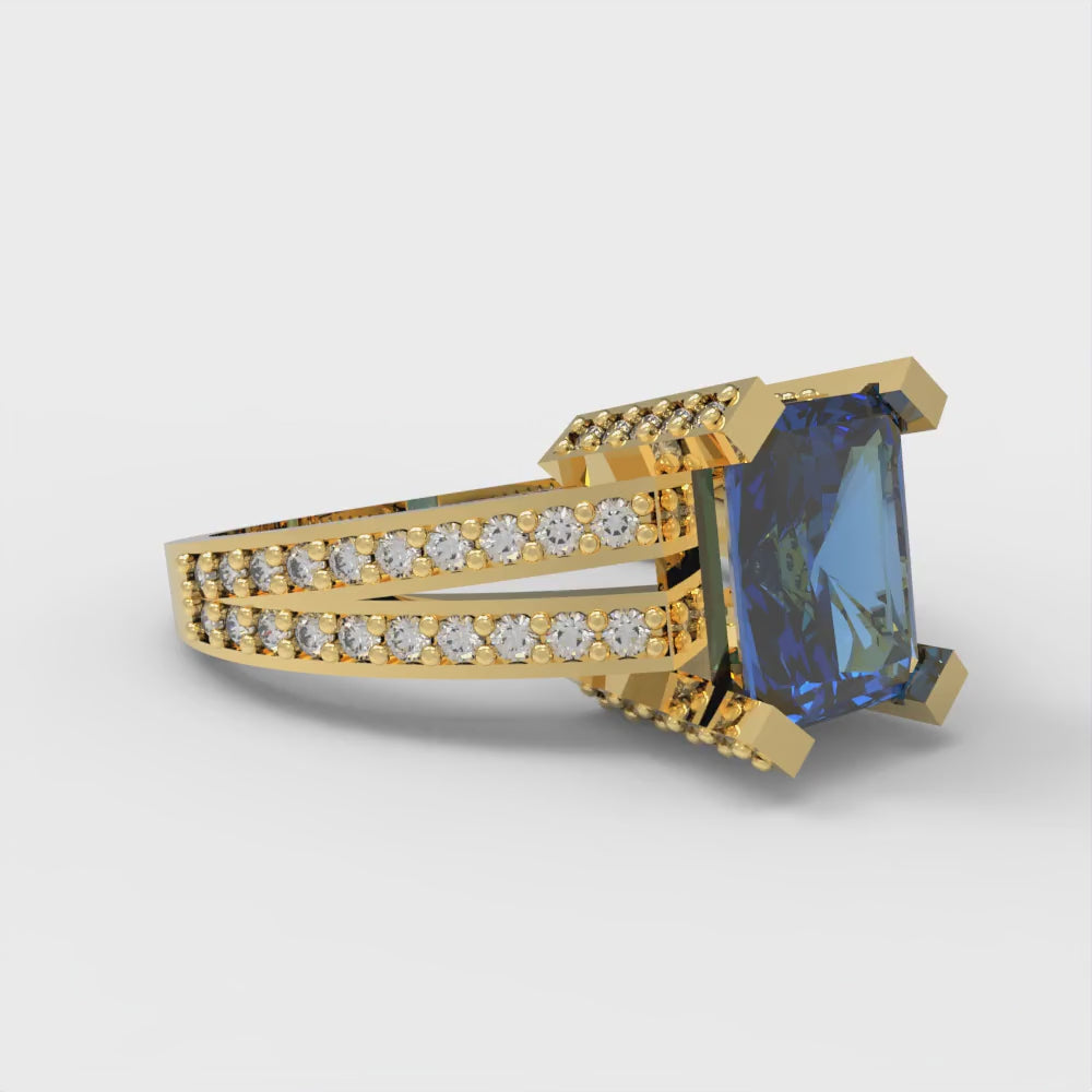 2.45 cttw Simulated Tanzanite Solitaire with Zirconia Simulated Diamond Accents Engagement Ring - Solid Gold (Emerald Cut,8x6mm)