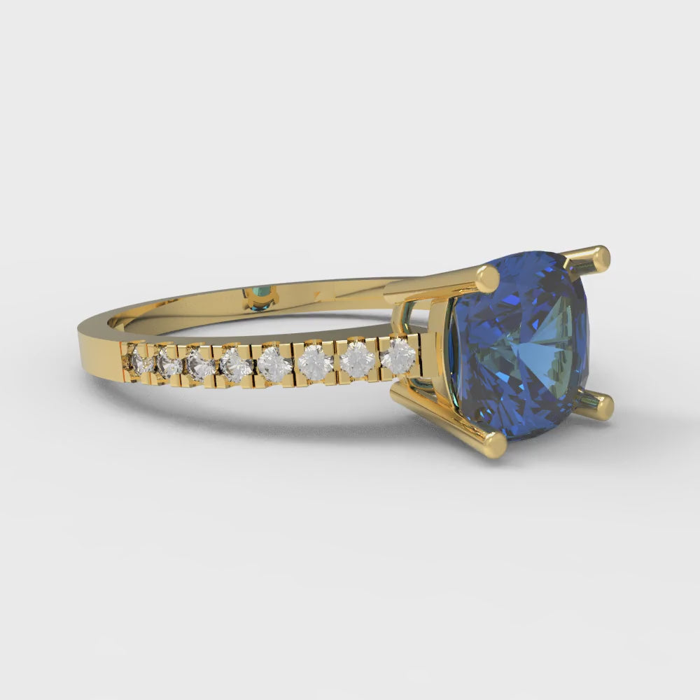 2.7 cttw Simulated Tanzanite Solitaire with Zirconia Simulated Diamond Accents Engagement Ring - Solid Gold (Cushion Cut,6.5mm)