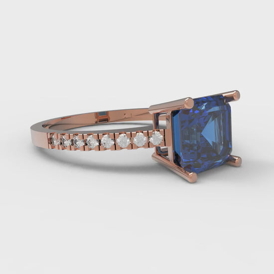 2.7 cttw Simulated Tanzanite Solitaire with Zirconia Simulated Diamond Accents Engagement Ring - Solid Gold (Asscher Cut,6.5mm)