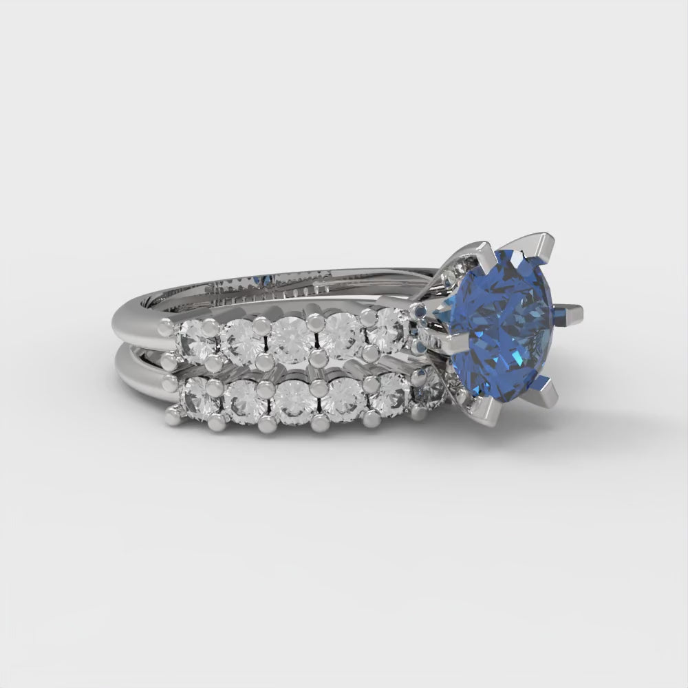 1.66 cttw Round Cut Simulated Tanzanite Bridal Set - Solid White Gold Engagement Ring & Wedding Band