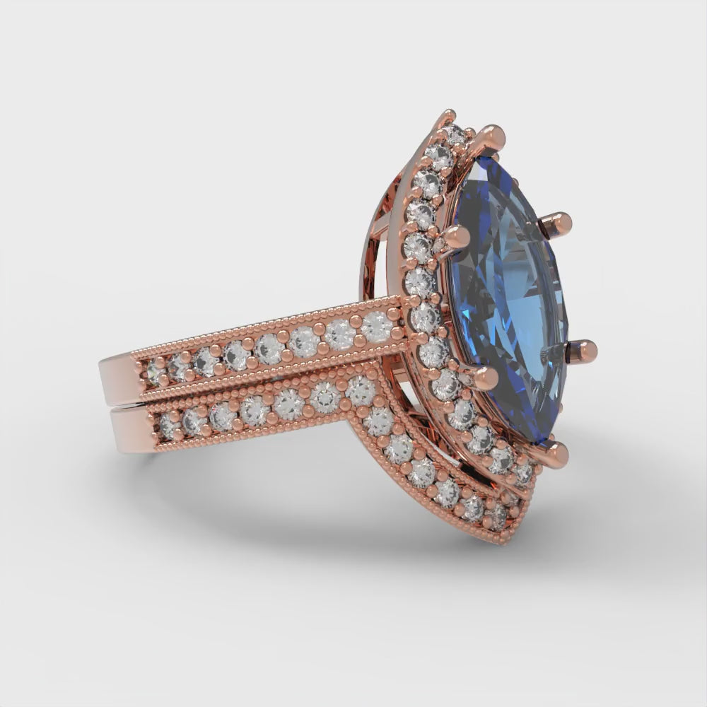 2.4875 cttw Marquise Cut Simulated Tanzanite Bridal Set - Solid Rose Gold Engagement Ring & Wedding Band
