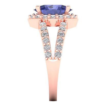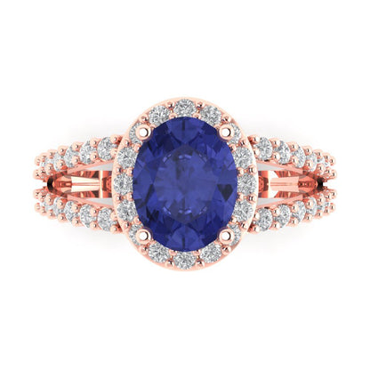 2.6 cttw Simulated Tanzanite Solitaire with Zirconia Simulated Diamond Accents Engagement Ring - Solid Gold (Oval Cut,9x7mm)