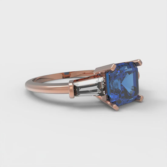 1.62 cttw Simulated Tanzanite Three-Stone Engagement Ring - Solid Gold (Square Emerald Cut,6.5X6.5mm)