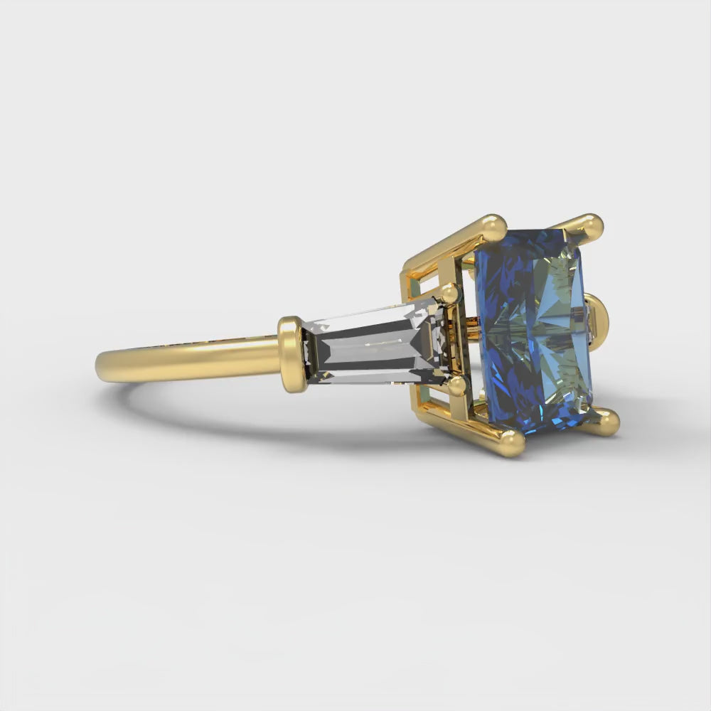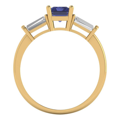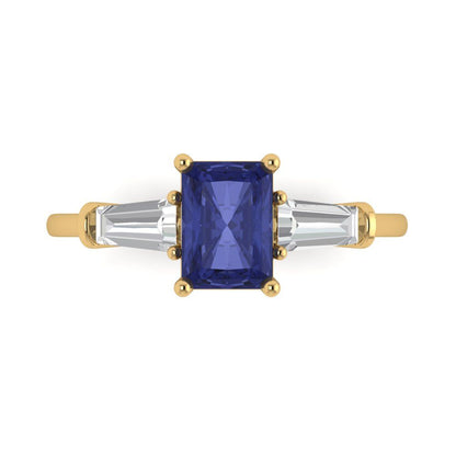 1.5 cttw Simulated Tanzanite Three-Stone Engagement Ring - Solid Gold (Emerald Cut,7.0x5.0mm)