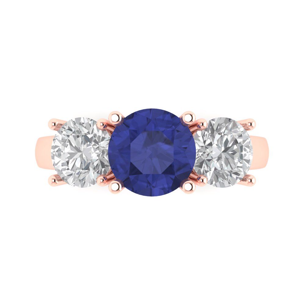 3 cttw Simulated Tanzanite Three-Stone Engagement Ring - Solid Gold (Round Cut,7.5mm)
