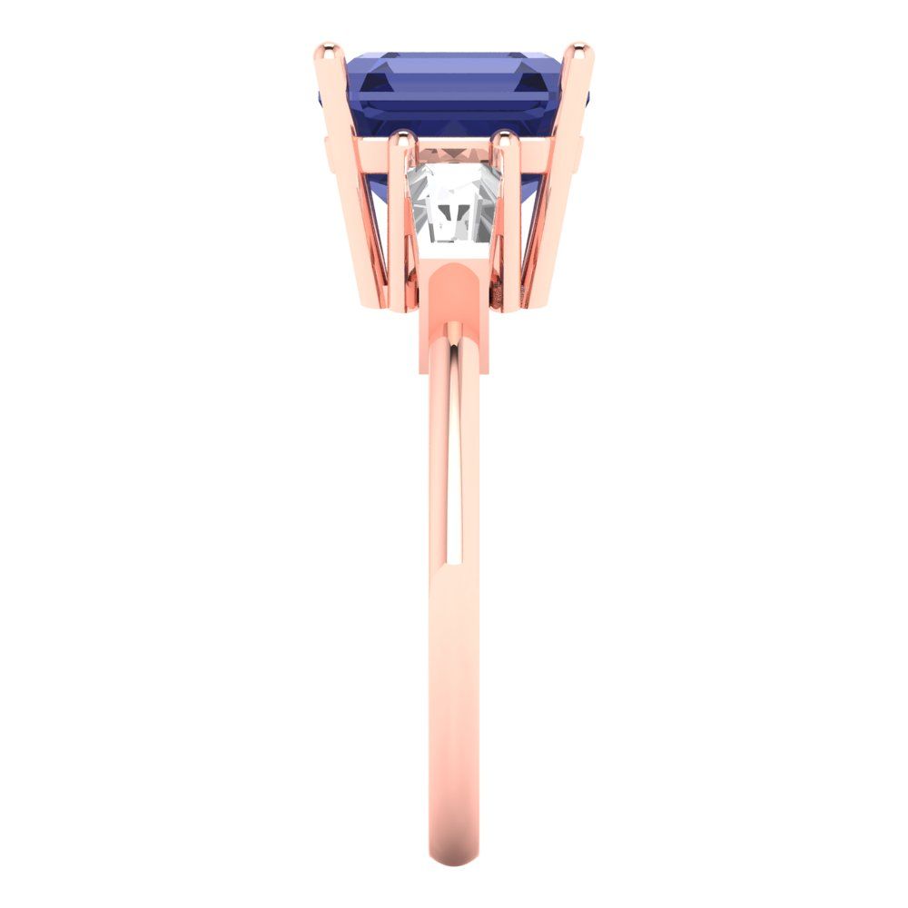 3 cttw Simulated Tanzanite Three-Stone Engagement Ring - Solid Gold (Asscher Cut,8.0mm)