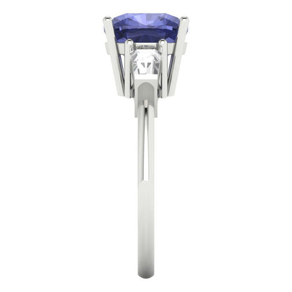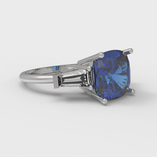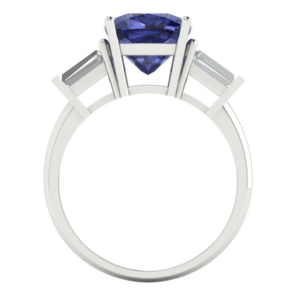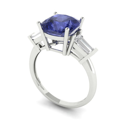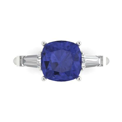 3 cttw Simulated Tanzanite Three-Stone Engagement Ring - Solid Gold (Cushion Cut,8.0mm)