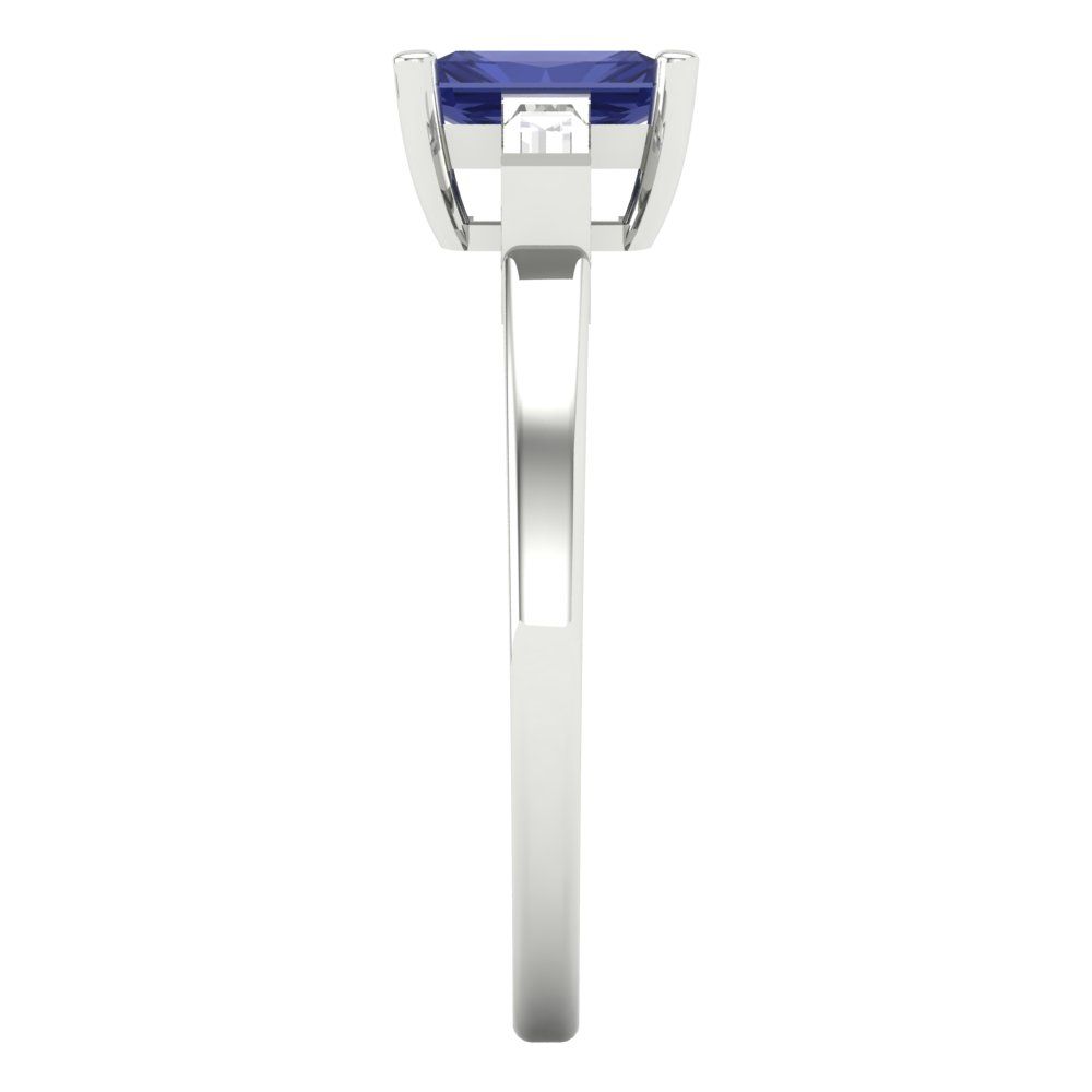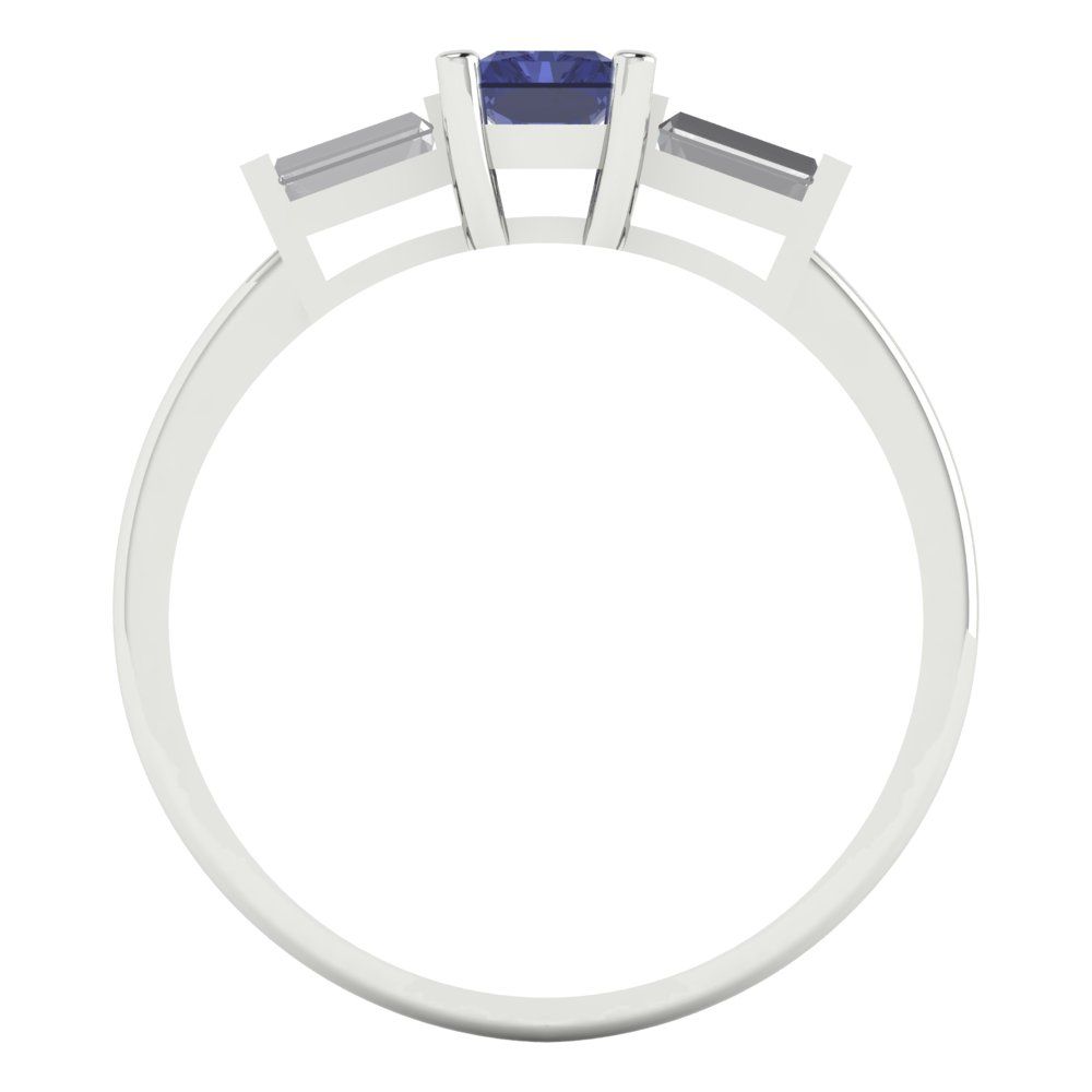 0.8 cttw Simulated Tanzanite Three-Stone Engagement Ring - Solid Gold (Emerald Cut,6x4mm)