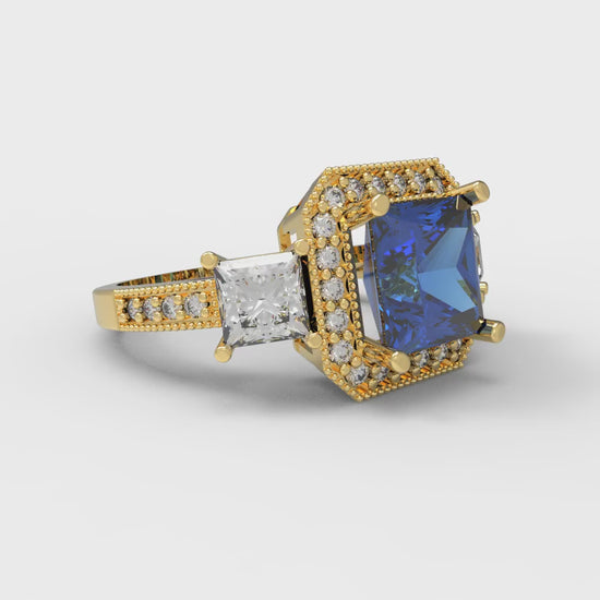 3.005 cttw Simulated Tanzanite Three-Stone Engagement Ring - Solid Gold (Princess Cut,7.0mm)