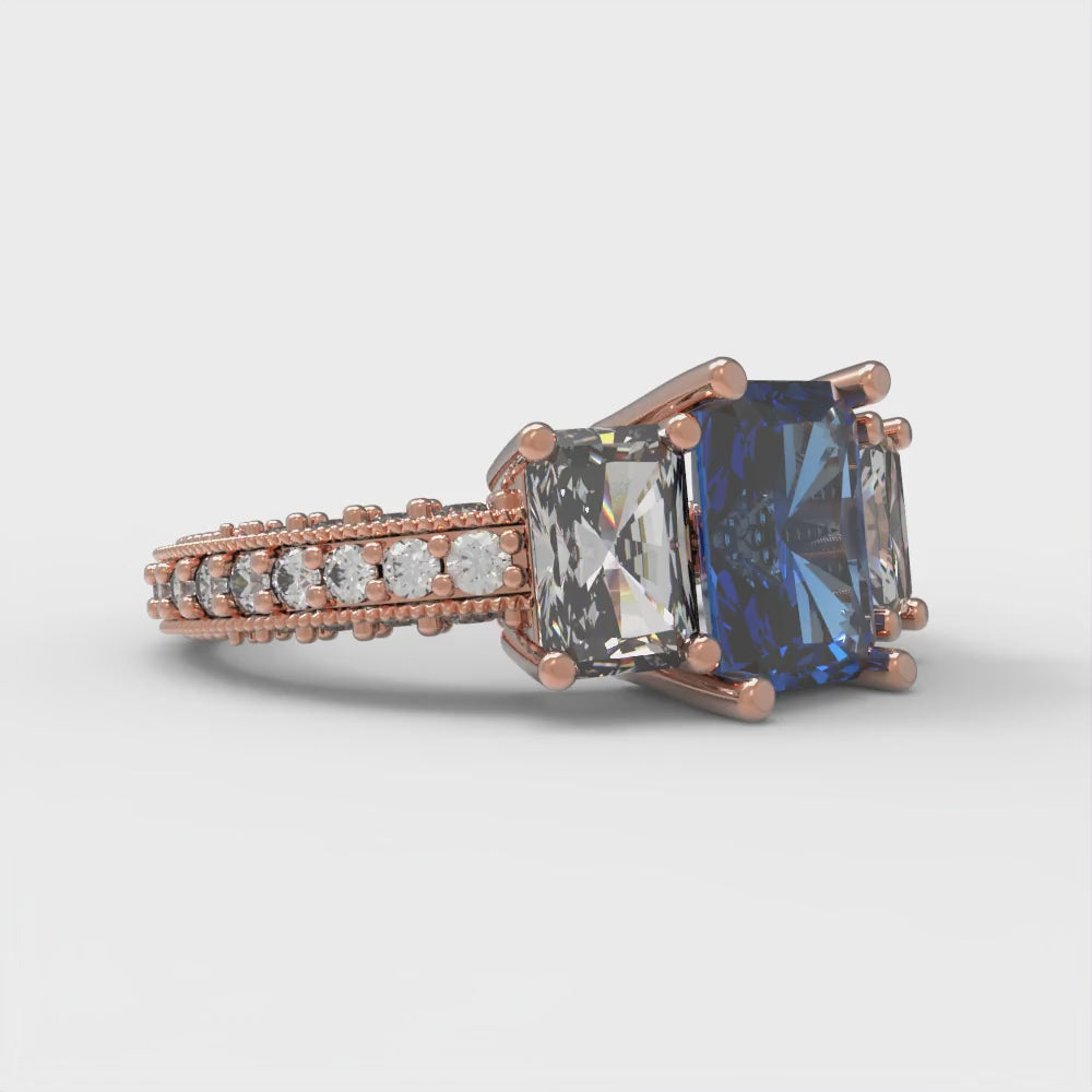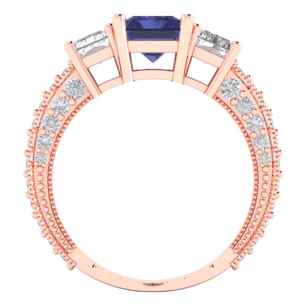 3.61 cttw Simulated Tanzanite Three-Stone Engagement Ring - Solid Gold (Emerald Cut,8x6mm)