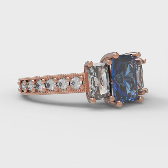 1.88 cttw Simulated Tanzanite Three-Stone Engagement Ring - Solid Gold (Emerald Cut,7x5mm)