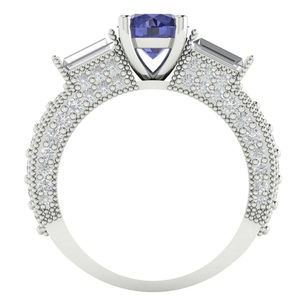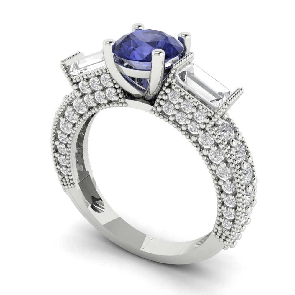 2.33 cttw Simulated Tanzanite Three-Stone Engagement Ring - Solid Gold (Round Cut,6.5mm)