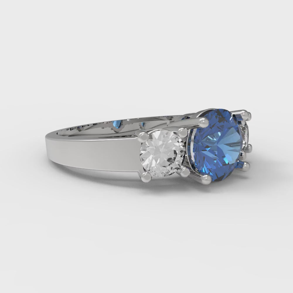 1.5 cttw Simulated Tanzanite Three-Stone Engagement Ring - Solid Gold (Round Cut,6.5mm)