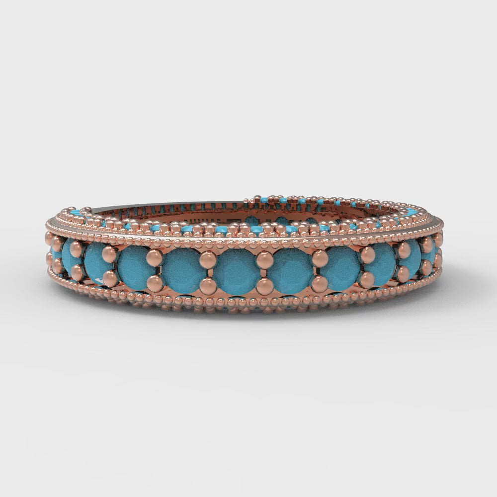 1.44 cttw Simulated Turquoise Round Cut Rose Gold Eternity Wedding Band