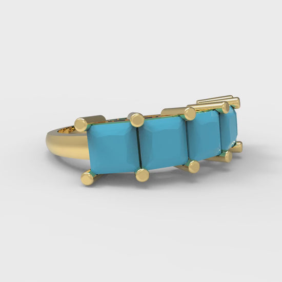 2.5 cttw Simulated Turquoise Princess Cut Yellow Gold Eternity Wedding Band