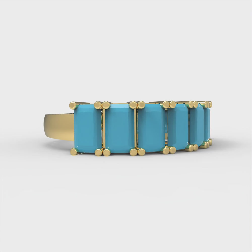 2.61 cttw Simulated Turquoise Emerald Cut Yellow Gold Eternity Wedding Band