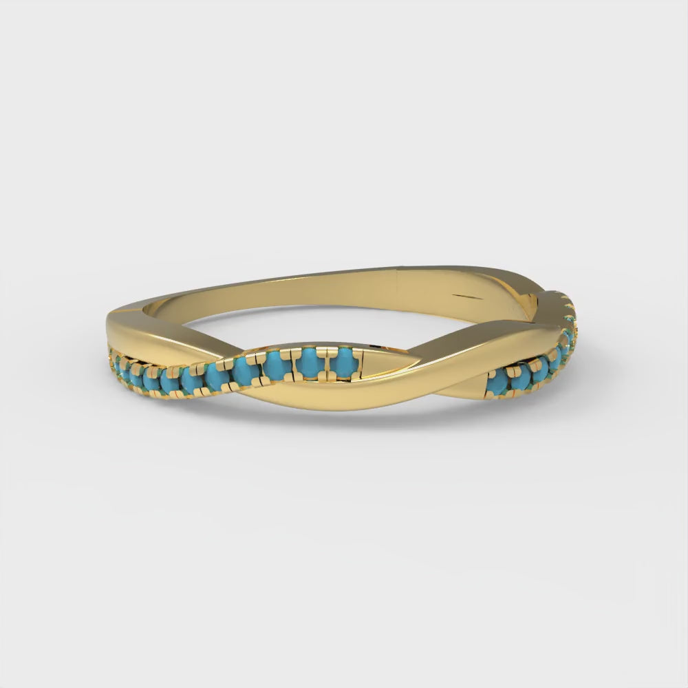 0.16 cttw Simulated Turquoise Round Cut Yellow Gold Eternity Wedding Band