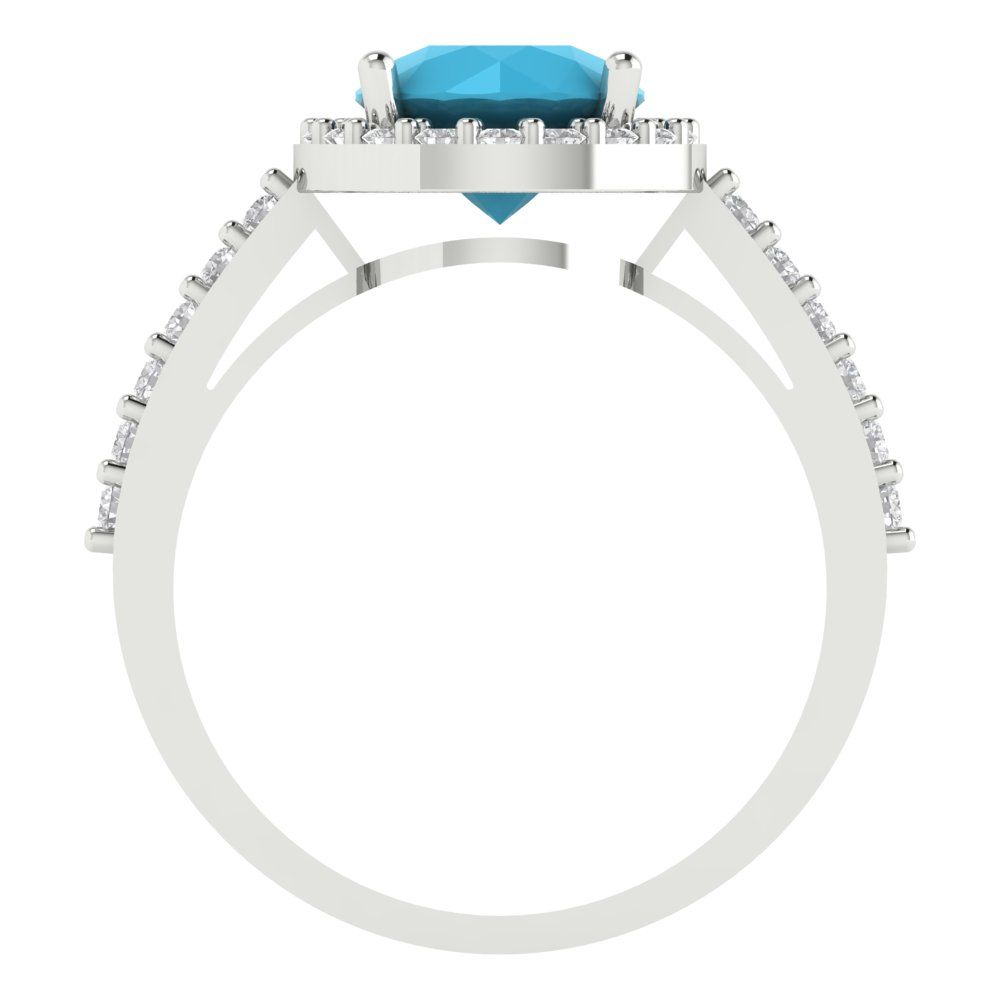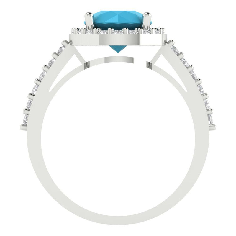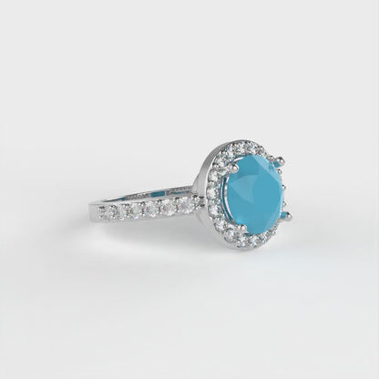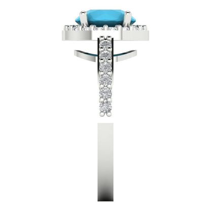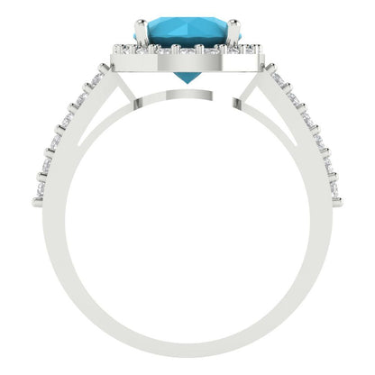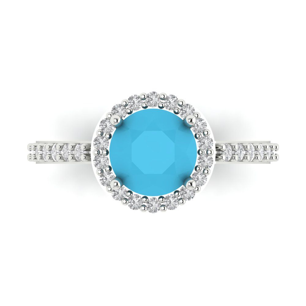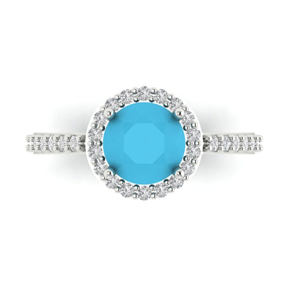 1.86 cttw Simulated Turquoise Hidden Halo Engagement Ring - Solid Gold (Round Cut,7.5mm)