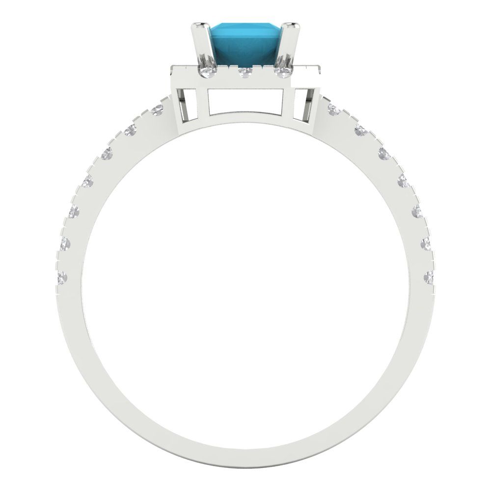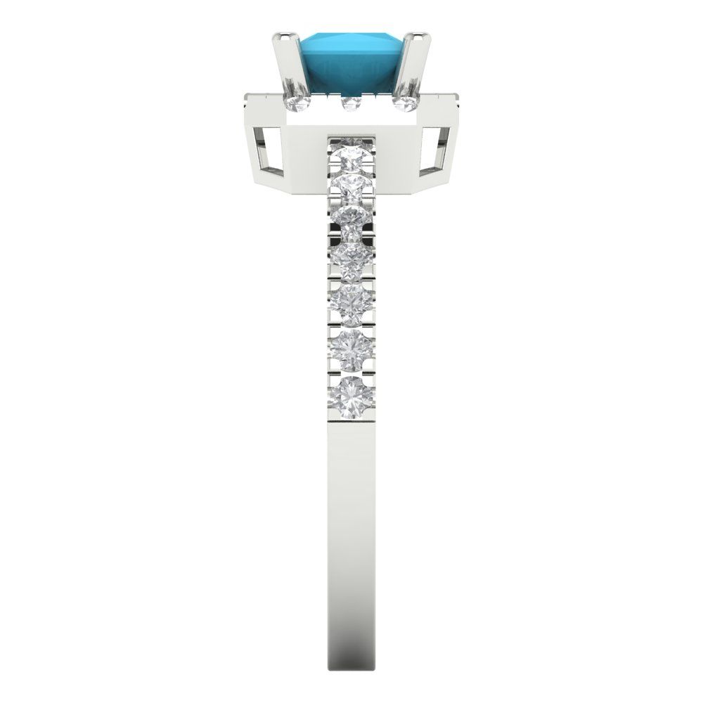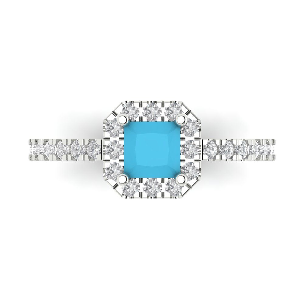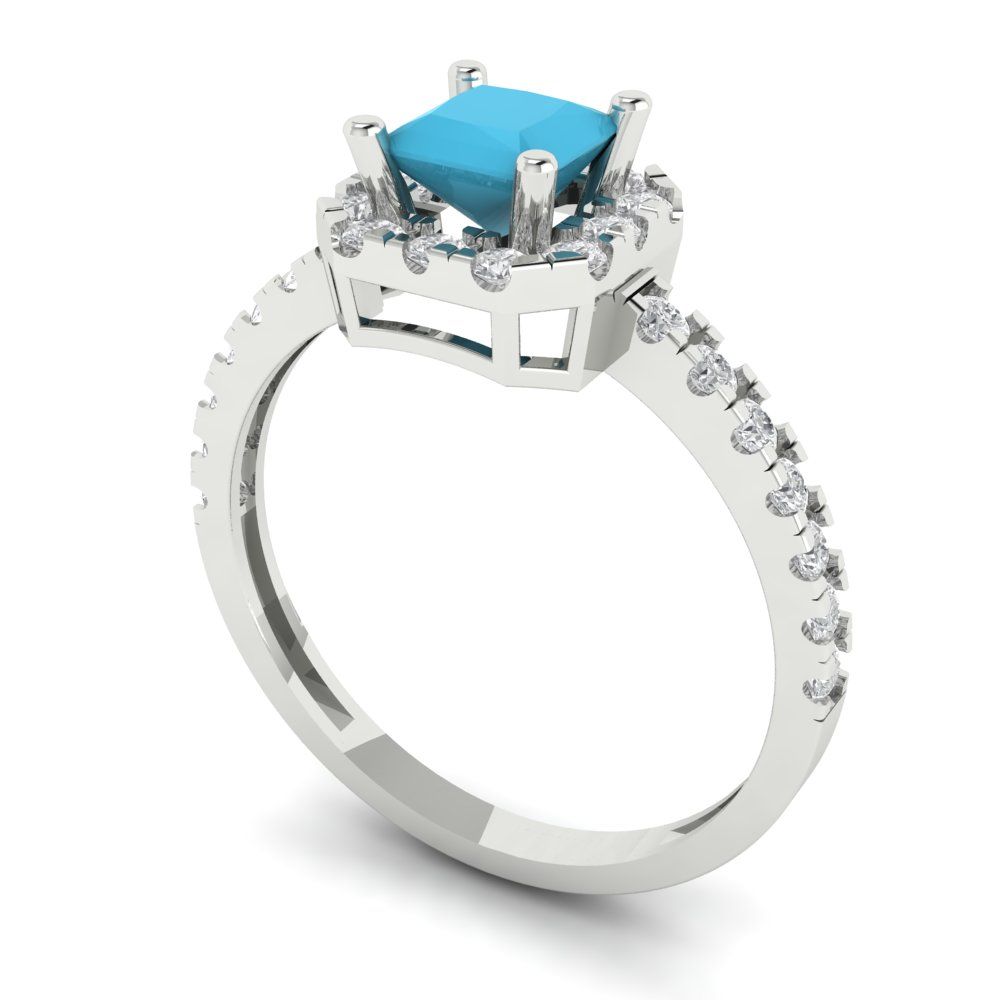 0.89 cttw Simulated Turquoise Hidden Halo Engagement Ring - Solid Gold (Princess Cut,4.5mm)