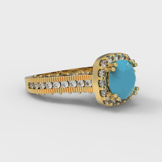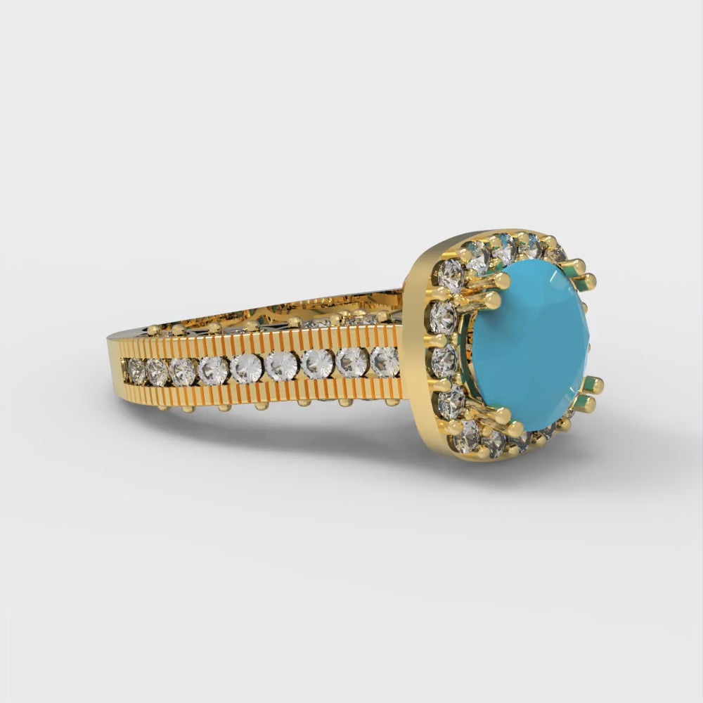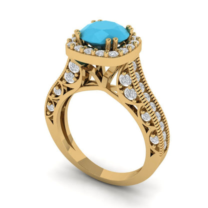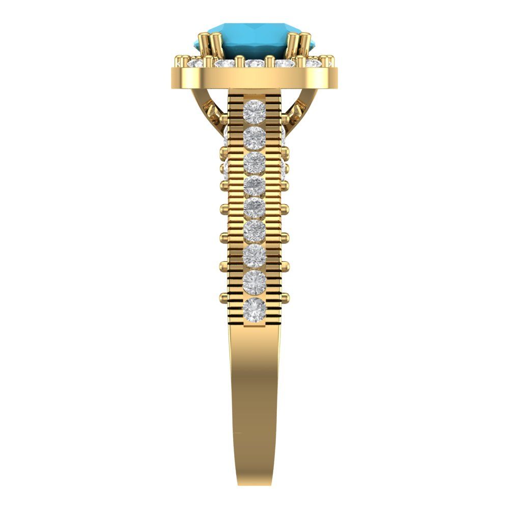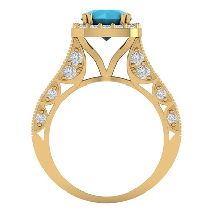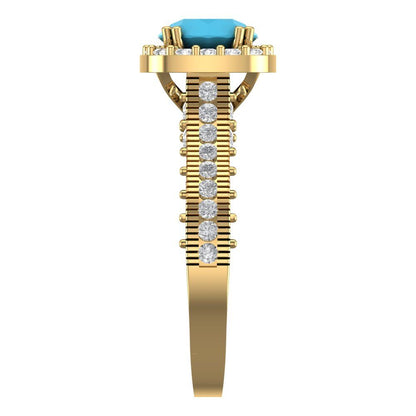 2.37 cttw Simulated Turquoise Hidden Halo Engagement Ring - Solid Gold (Round Cut,7.5mm)