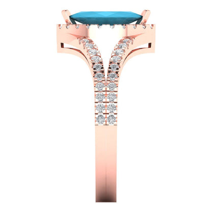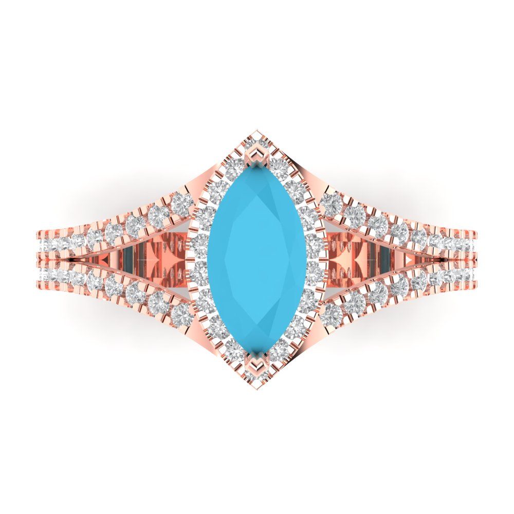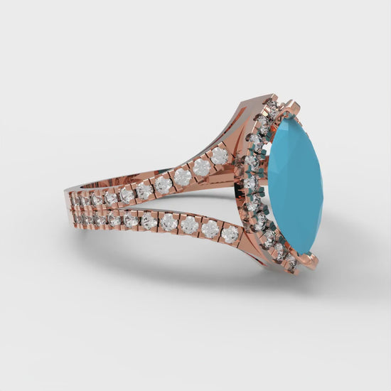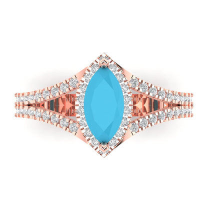1.2 cttw Simulated Turquoise Hidden Halo Engagement Ring - Solid Gold (Marquise Cut,9x4.5mm)